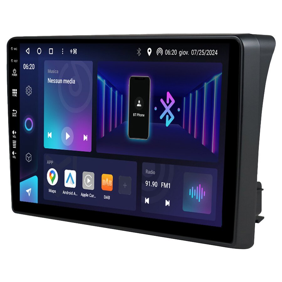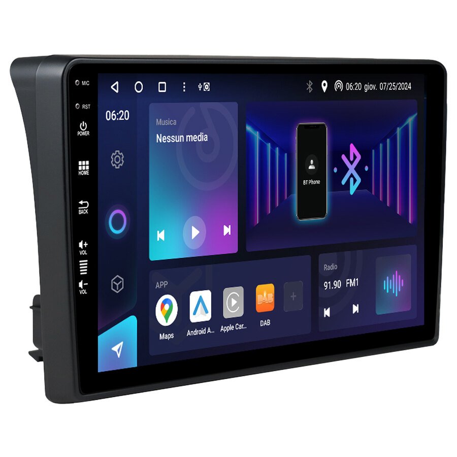Sistema multimediale per la sostituzione del sistema multimediale di serie del veicolo. Fornito di specifico adattatore, mantiene il design originale del cruscotto. Dotato di monitor QLED 9″ ad alta definizione touchscreen capacitivo, garantisce un avvio rapido ed un funzionamento stabile di tutte le funzionalità Android. Connettività senza fili: Apple CarPlay, Android Auto Wireless. Massima funzionalità: sistema operativo Android 13. Super Broadcasting DAB+: ricezione superiore per un ascolto impeccabile. Avvio ultraveloce e funzionamento stabile. Memoria interna 64GB