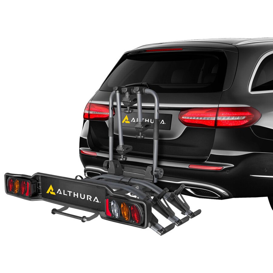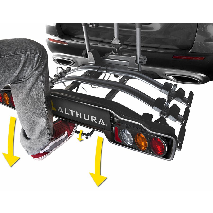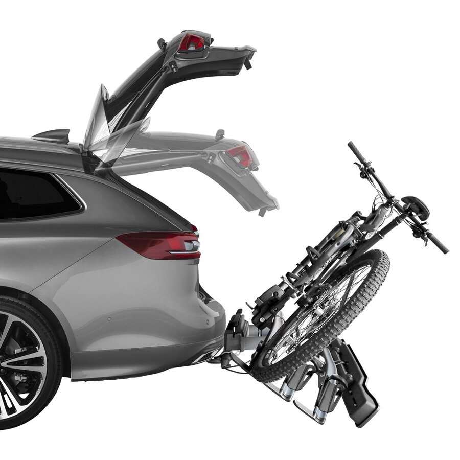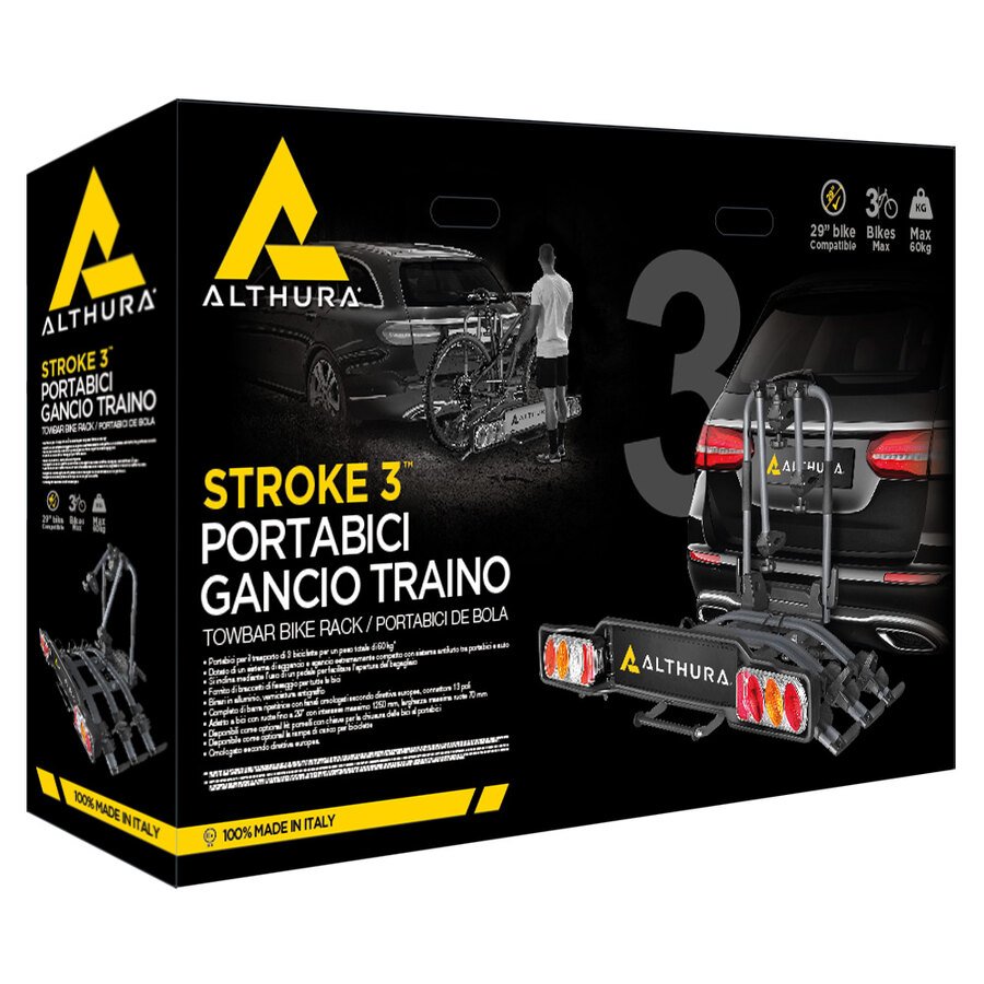 Portabici da gancio traino per 3 bici (carico massimo per bici 20kg, portata max portabici 60 kg). Dotato di un sistema di aggancio e sgancio estremamente compatto e funzionale con sistema antifurto tra portabici e auto. Si inclina mediante l’uso di un pedale per facilitare il carico posteriore. Braccetti distanziatori inclusi. Verniciatura antigraffio. Completo di barra ripetitrice con fanali 13 poli omologati secondo direttiva europea. Binari in alluminio. Compatibile con bici fino a 29″ con interasse massimo 1250 mm. Larghezza massima ruote 70 mm. Omologato secondo direttiva europea.