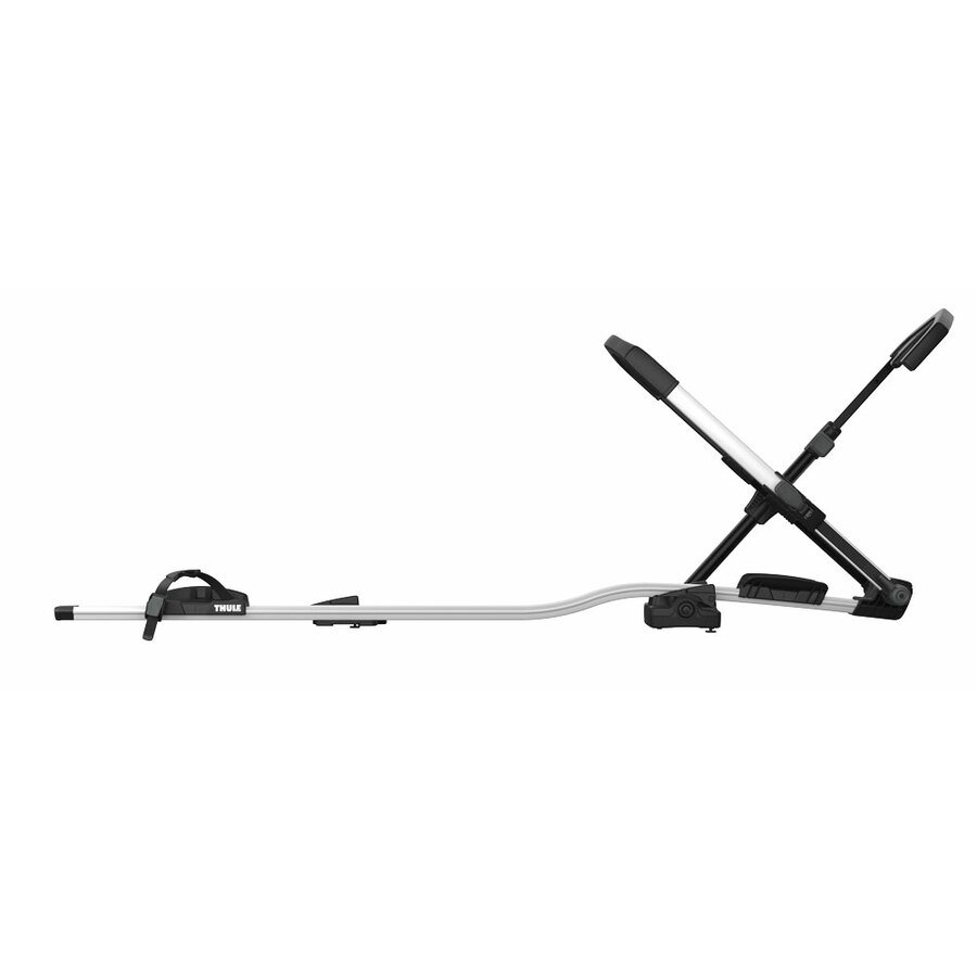 Portabici da tetto (barre portatutto non incluse). Massima protezione del telaio: non c’è alcun contatto con il telaio della bici, il gancio si fissa alla ruota anteriore. Adatto a bici con telaio in carbonio. Il design versatile è adatto a bici dotate di telai non tradizionali, sospensione posteriore e supporti per borracce. Interfaccia semplice per spostare il portabici da un lato all’altro dell’auto. Assicura rapidamente la ruota posteriore grazie alla cinghia fermaruota di fissaggio. Compatibile con la maggior parte delle bici con ruote da 20-29″, pneumatici con ampiezza fino a 3″. Interasse bici: 1300mm. Il massimo peso consentito è di 20 kg. Assicura la bici al portabici e quest’ultimo alle barre portatutto. Compatibile con barre con canalina a T (20x20mm).